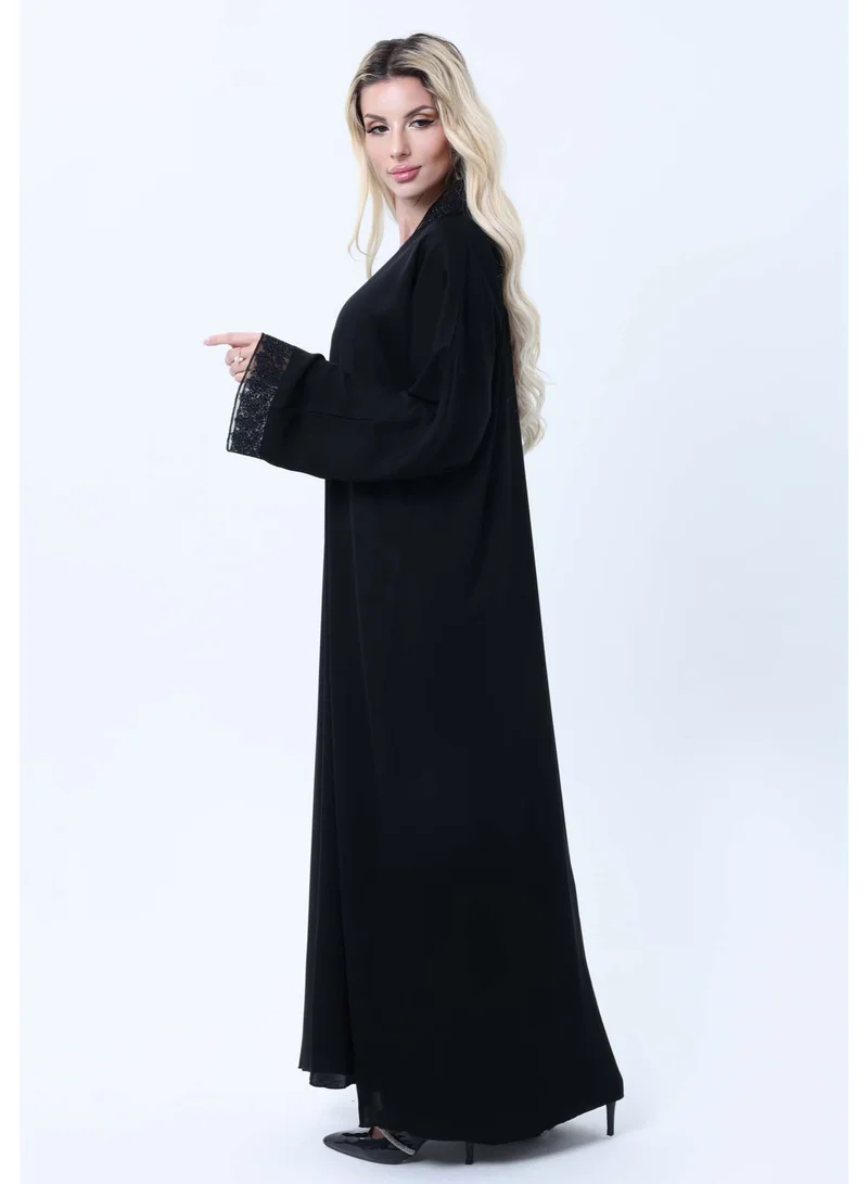 Elevate your style with this luxury black abaya, made from lightweight, breathable Nida fabric for all-day comfort. Designed with delicate blue and black lace detailing, this abaya brings a touch of elegance and sophistication to your modest fashion wardrobe. Perfect for everyday wear, special occasions, and evening gatherings, it’s a must-have piece for women who love stylish abayas online.