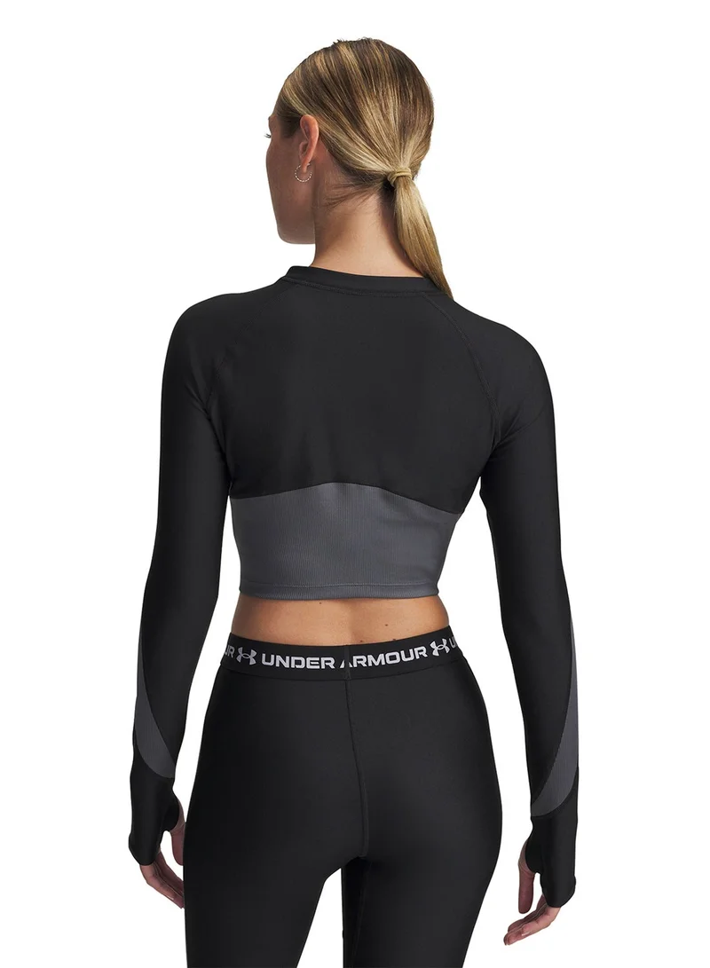 The Under Armour HeatGear Rib 1/4 Zip women's training longsleeve in excellent functionality during workouts thanks to advanced technologies that support thermal comfort