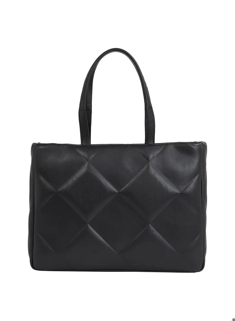 CALVIN KLEIN Women's Large Quilted Tote Bag - Faux Leather, Black