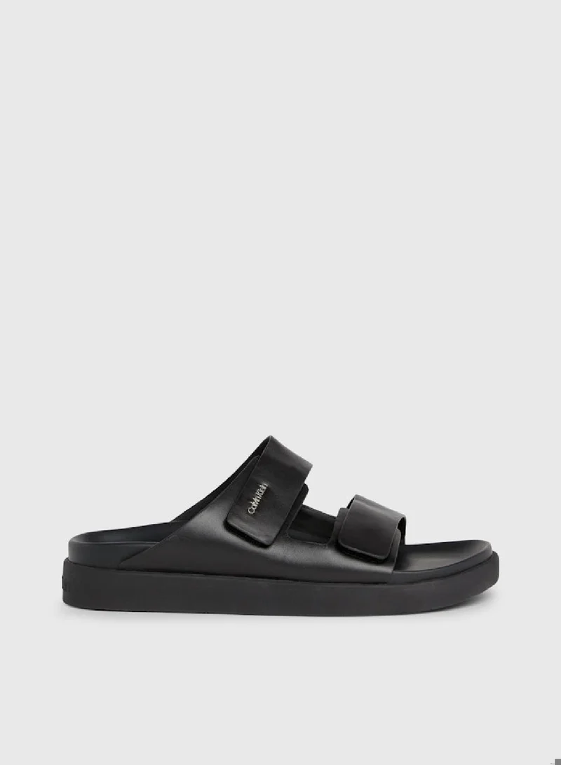 Enjoy timeless elegance with Calvin Klein's Leather Sandals. Crafted from premium leather, these sandals offer effortless sophistication and comfort, making them a versatile choice for both casual and dressy occasions. The classic design features a minimalist silhouette with a comfortable footbed and adjustable straps for a customized fit. Whether you're heading to the office or out for dinner, these sandals will elevate any outfit with their understated yet refined style.