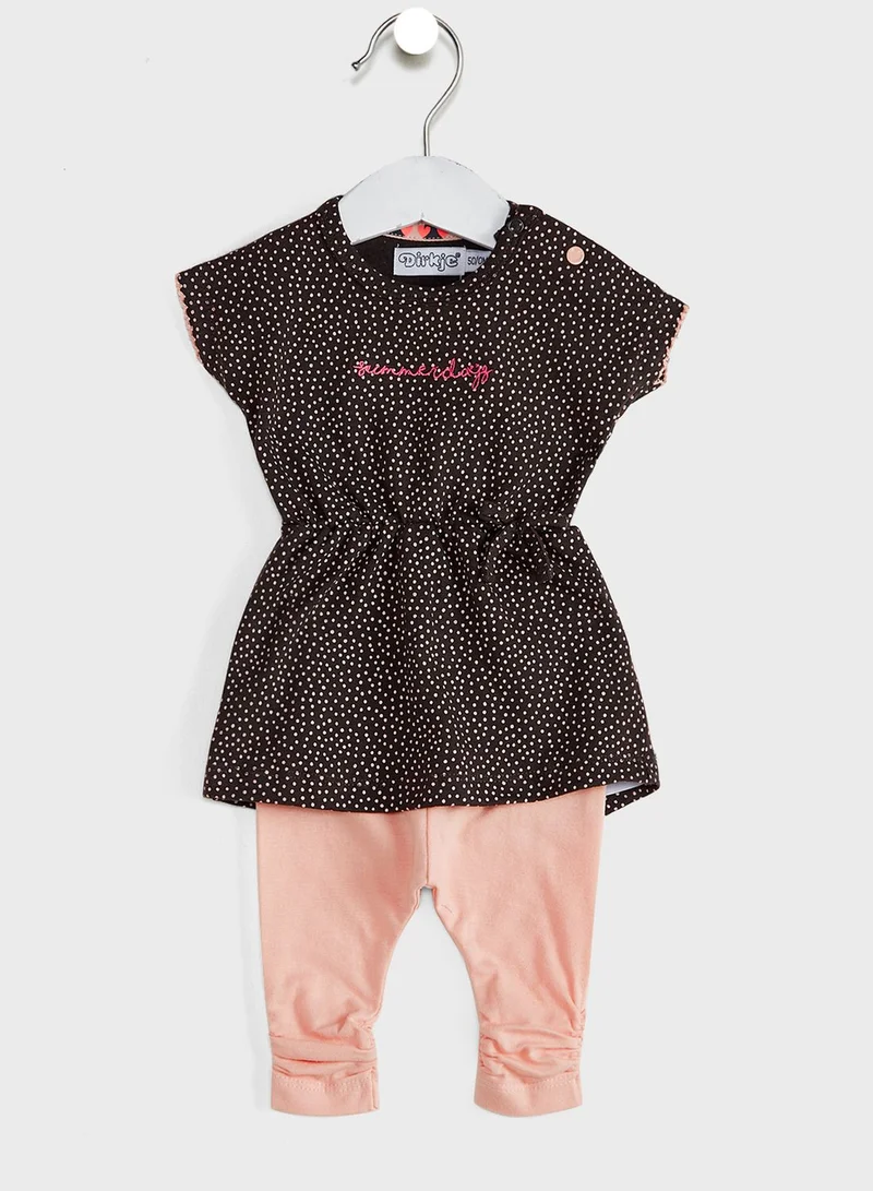 Dirkje Infant Slogan Belted Dress + Leggings Set