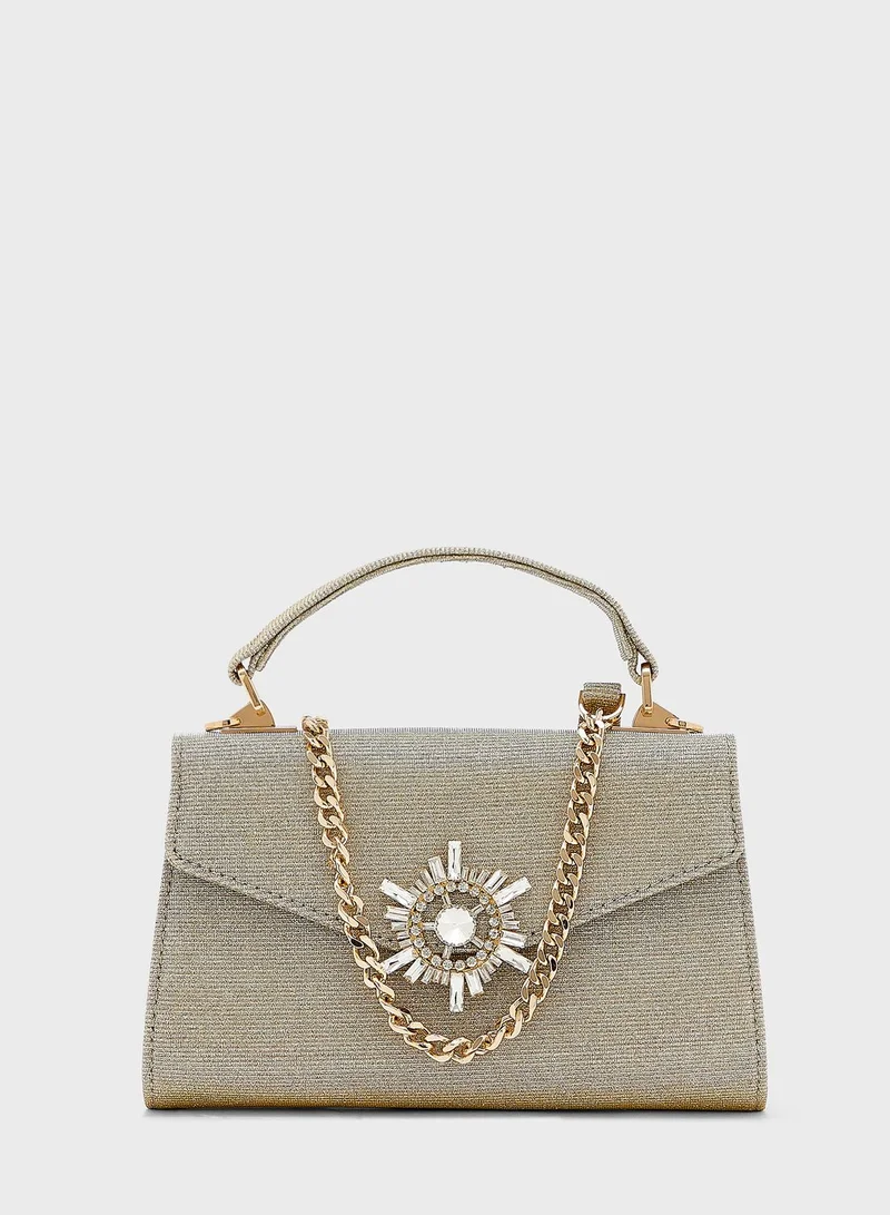 Introduce modern elegance to your accessories with this tote bag from Dune; defined with a stone embellished brooch on the front flap.
