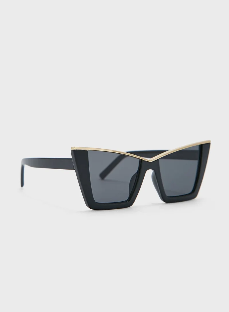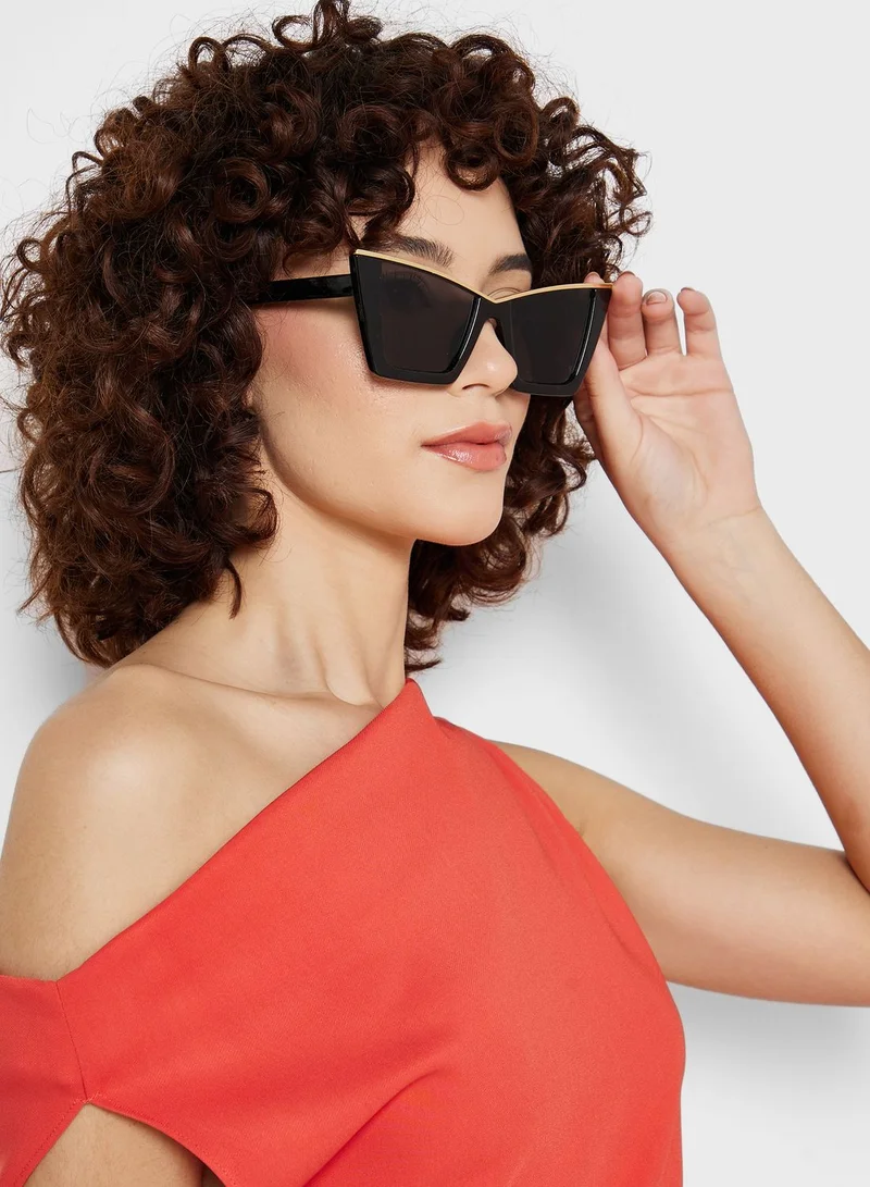 Metallic Trim Detail Cateye Sunglasses