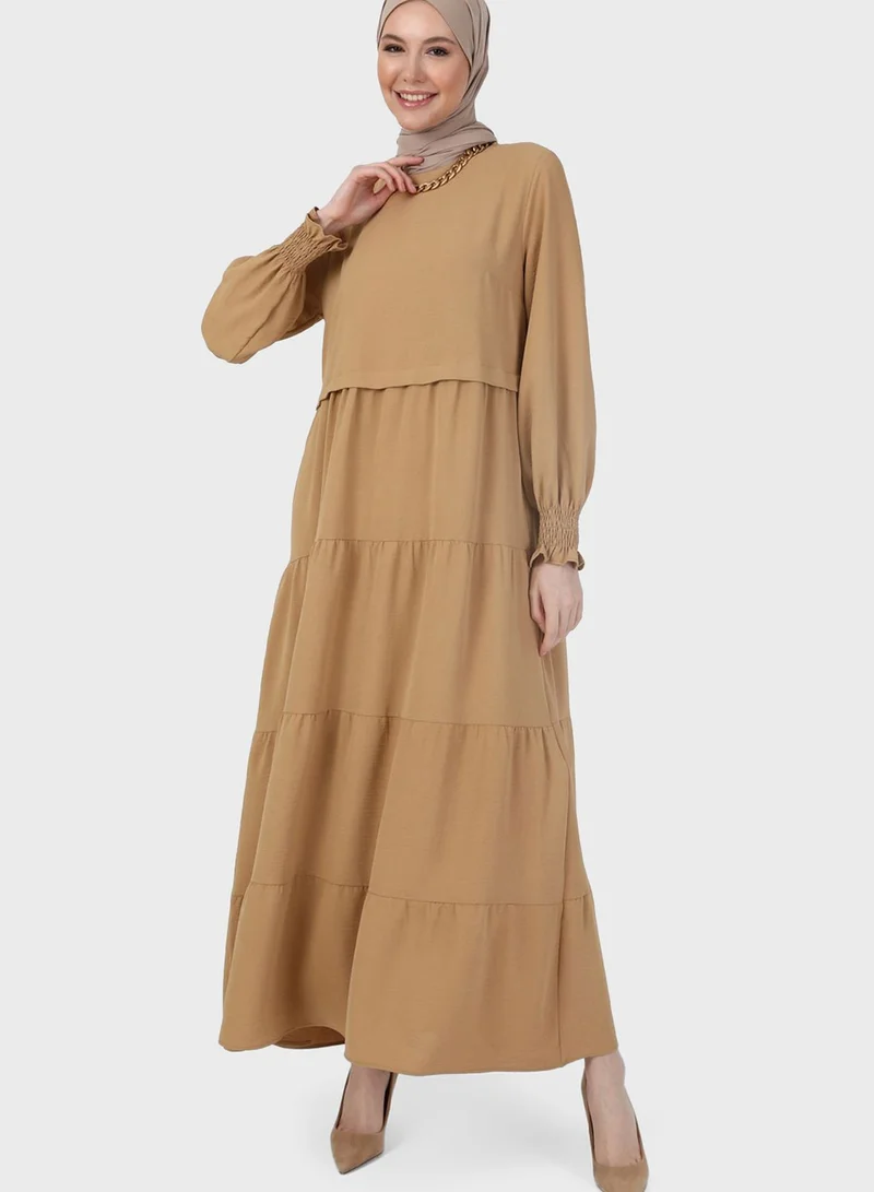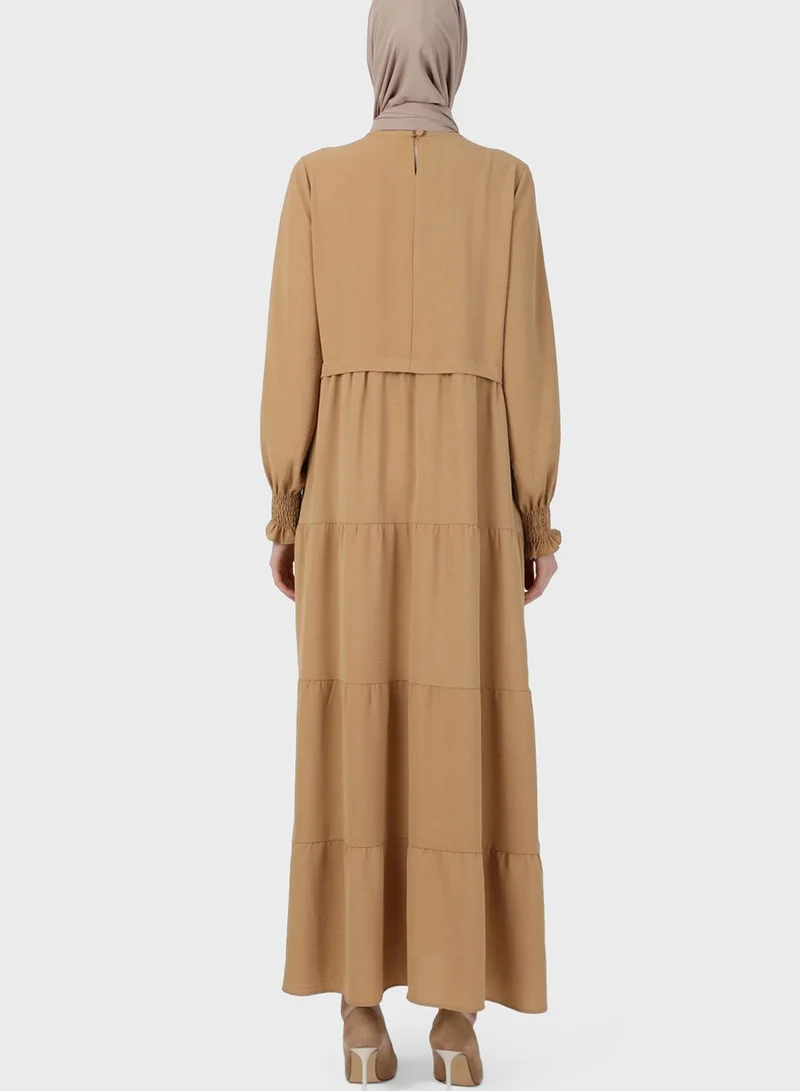 Refka by modanisa Ruched Sleeve Tiered Dress
