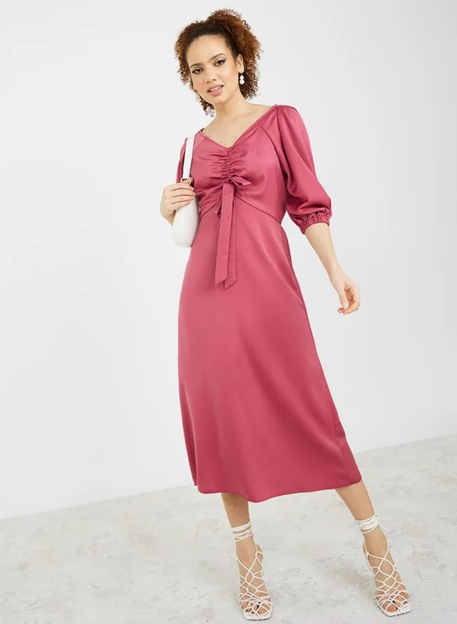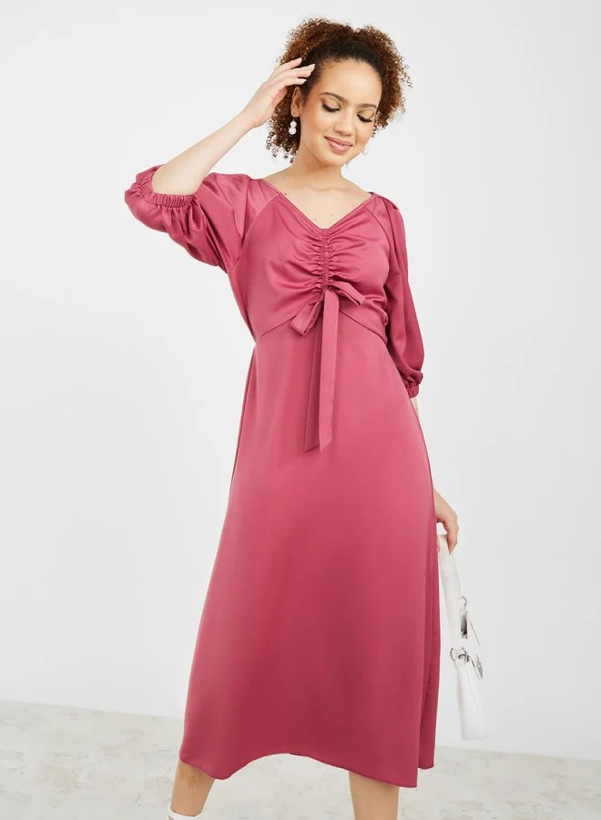 Styli 3/4 Sleeves Ruched Detail A-Line Midi Dress