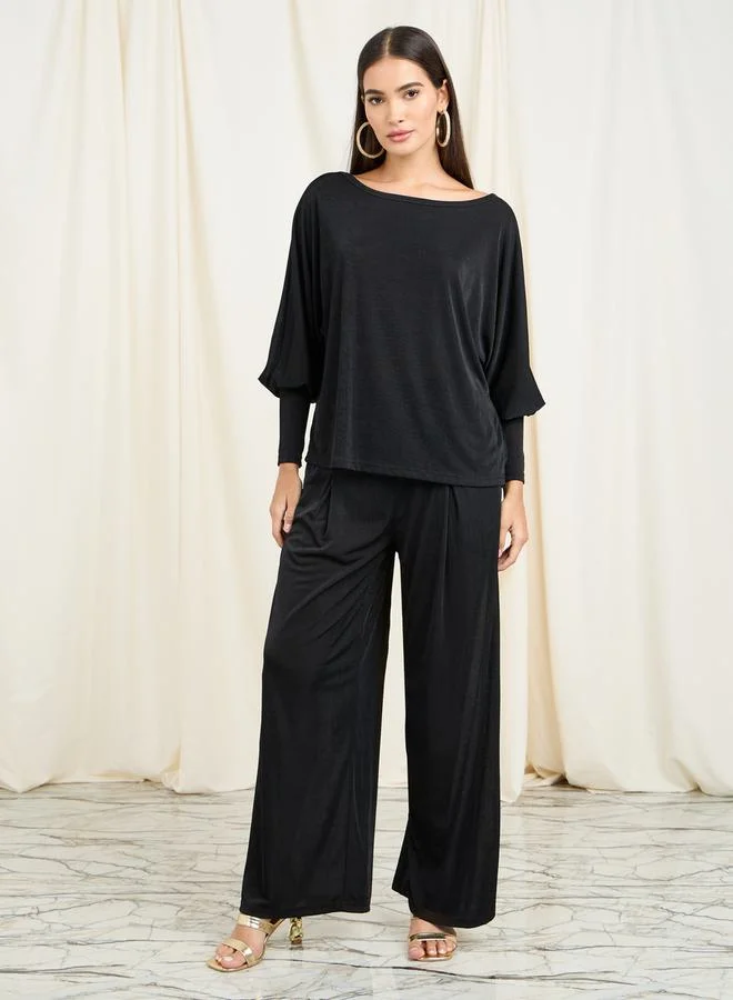 Styli Batwing Sleeve Top & Wide Leg Pants Co-Ord