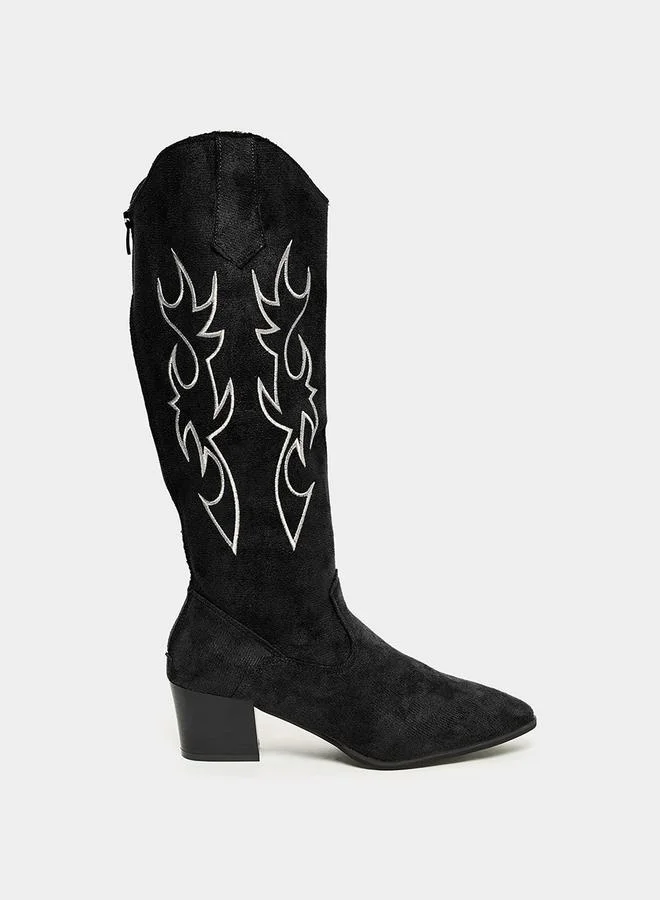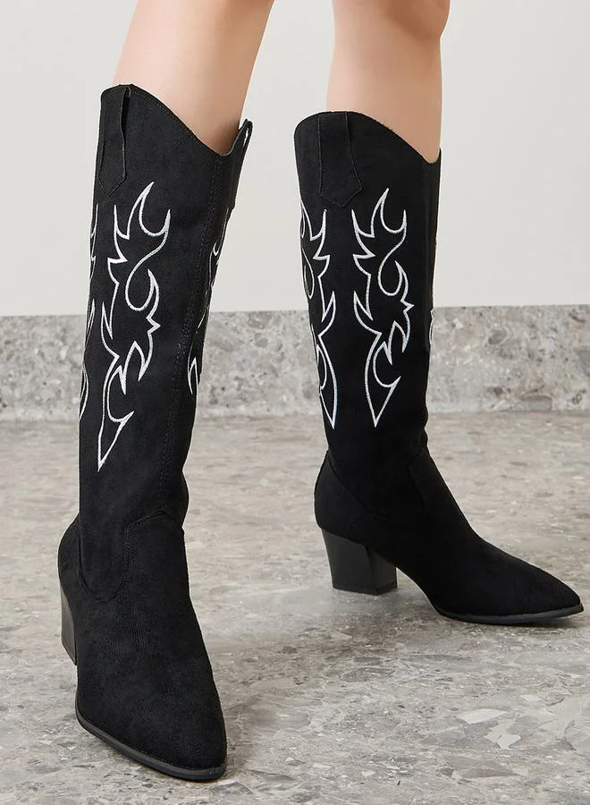 Styli Calf Suede-Look Embroidered Western Boots