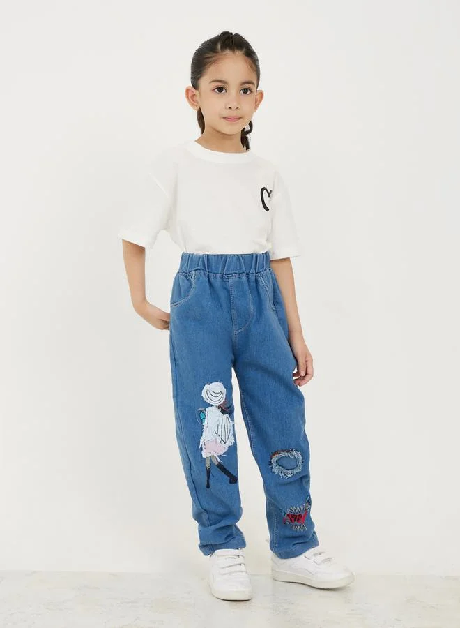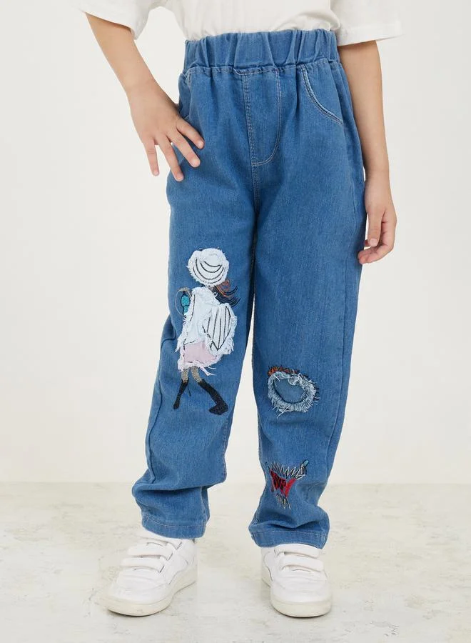 Styli Distress Patch Detail Graphic Print Relax Jeans