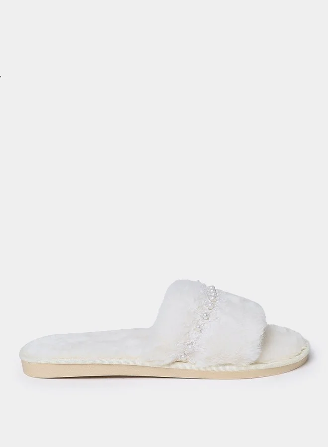 Styli Embellished Fluff Single Band Bedroom Slippers