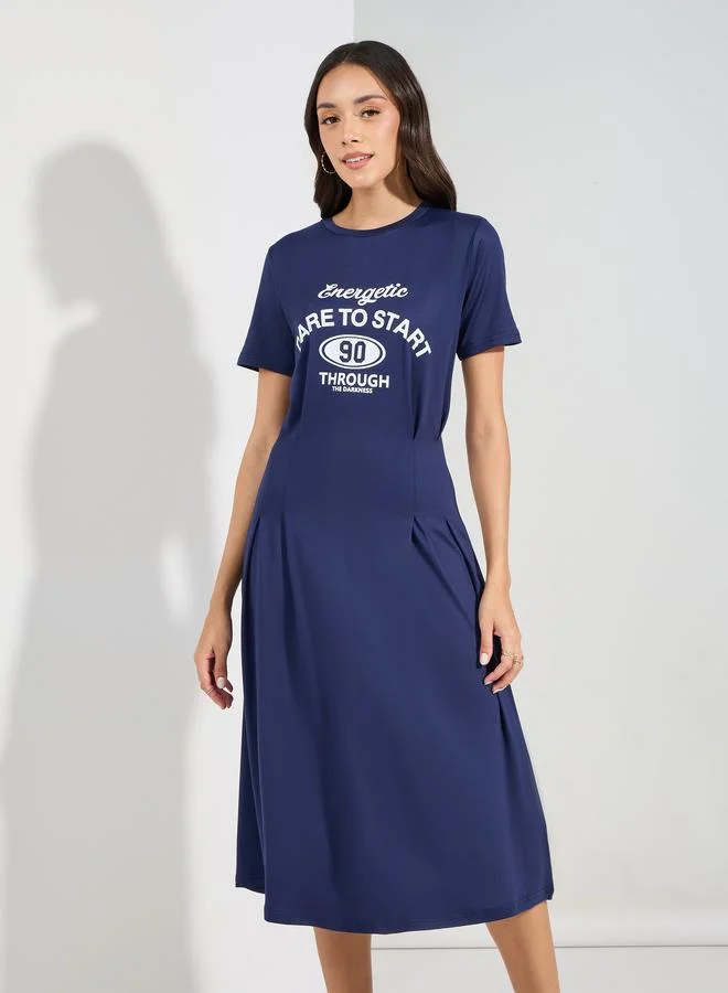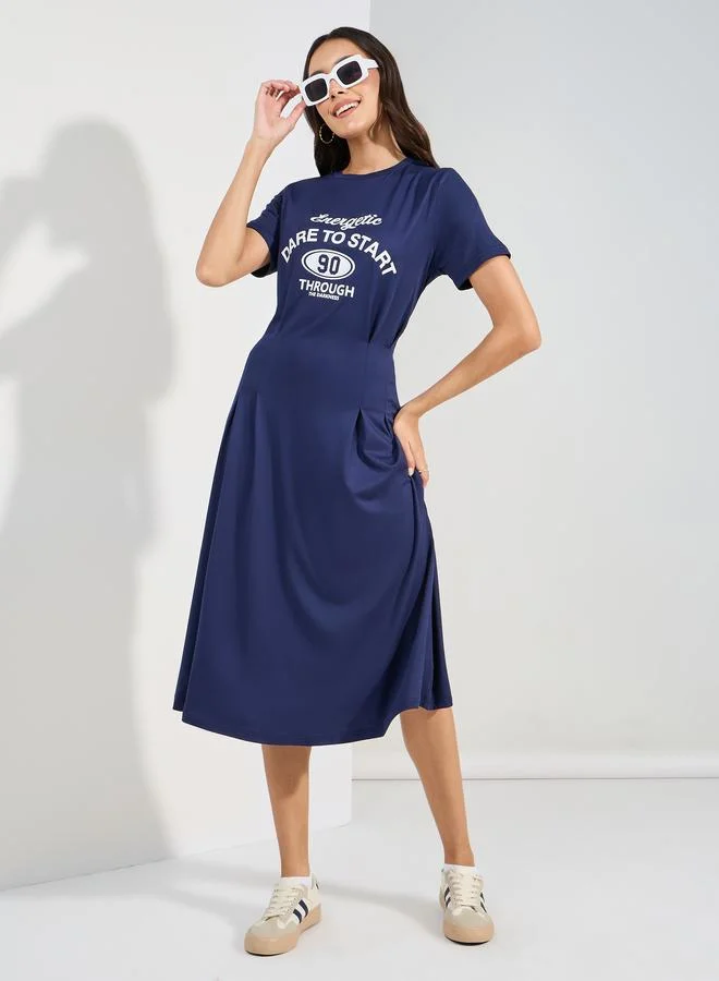 Styli Graphic Print Fitted Waist T-Shirt Midi Dress
