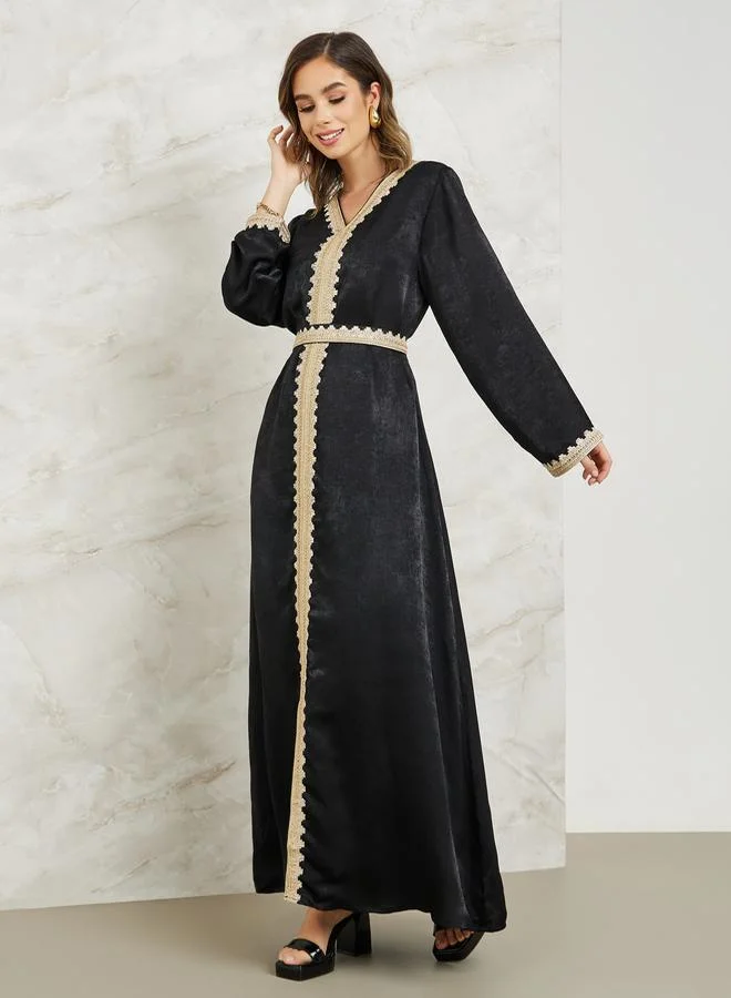 Lace Trim Kaftan with Tie Belt