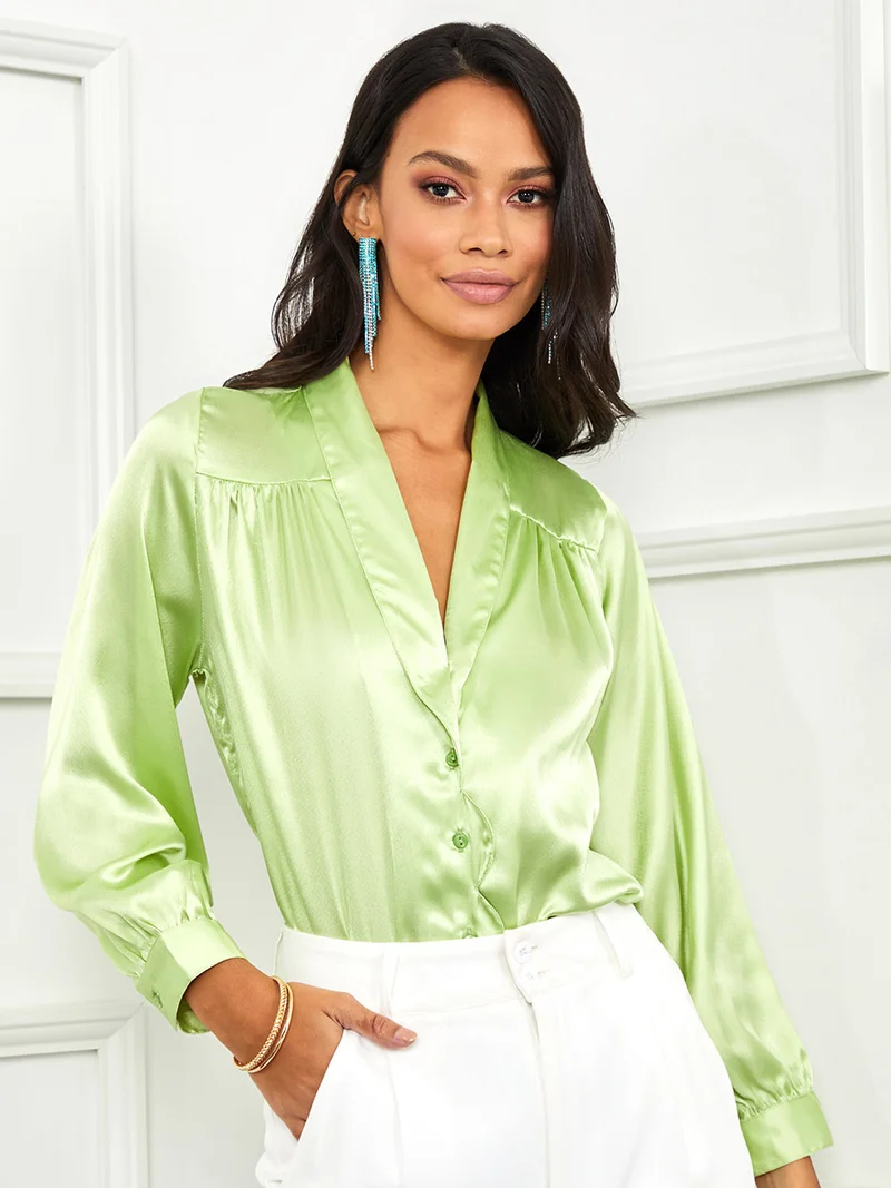 Long Sleeves V Neck Button Through Blouse