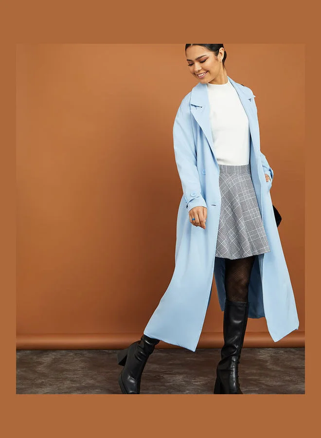 Styli Oversized Double Breasted Maxi Length Coat with Sleeve Tabs