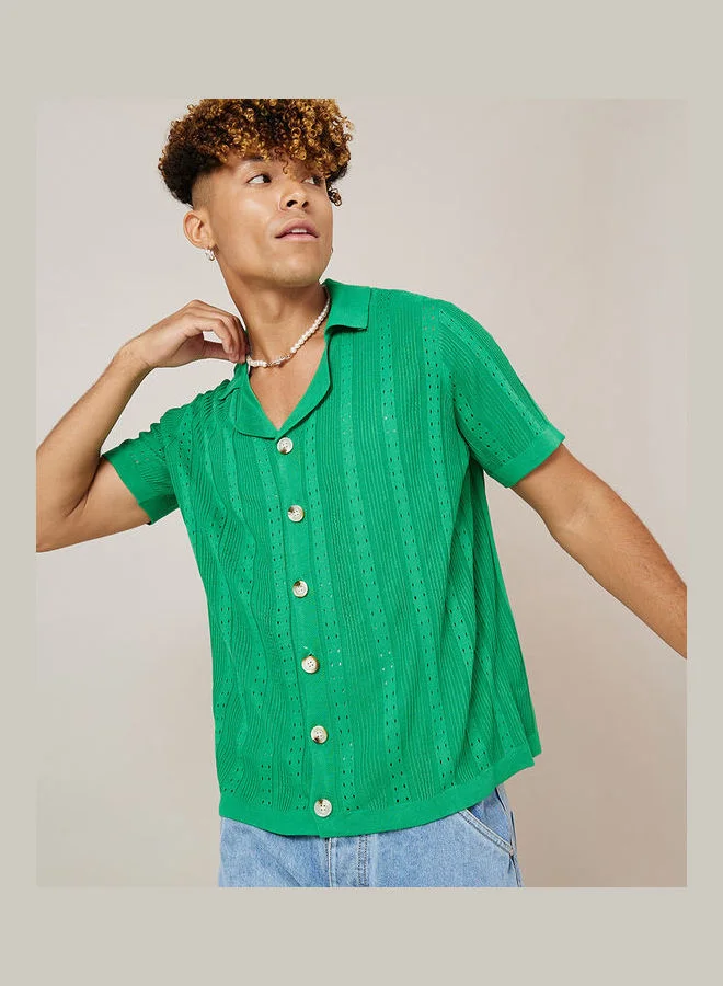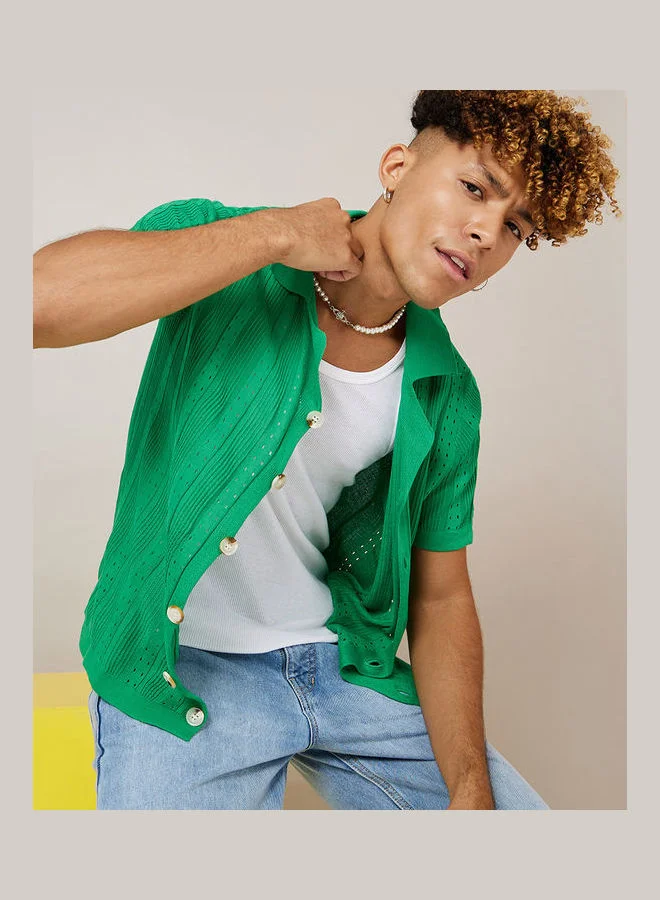 Styli Pattern Knit Shirt with Big Button Detail