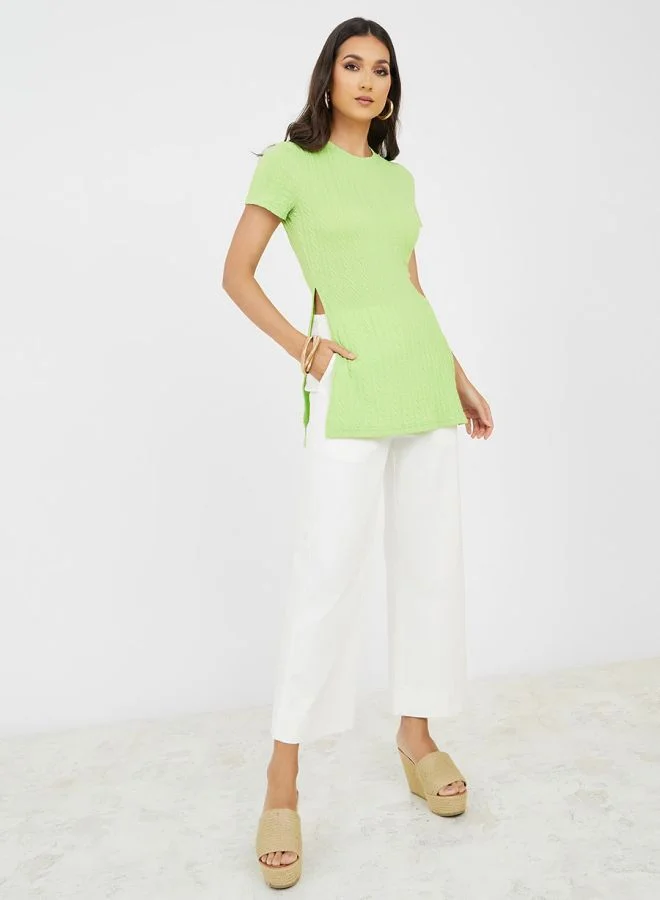 Styli Side Slit Detail Cable Knit Longline T-Shirt