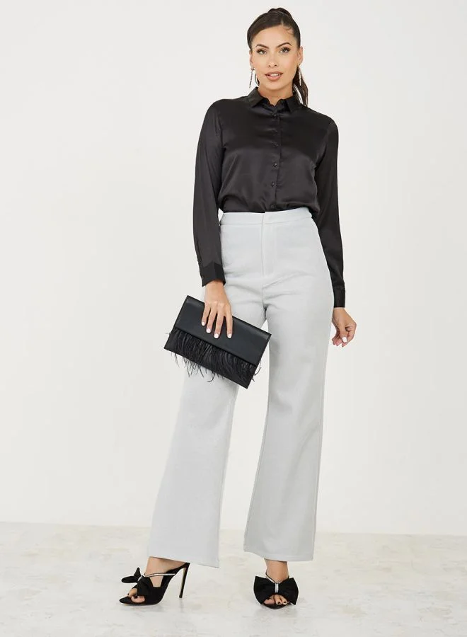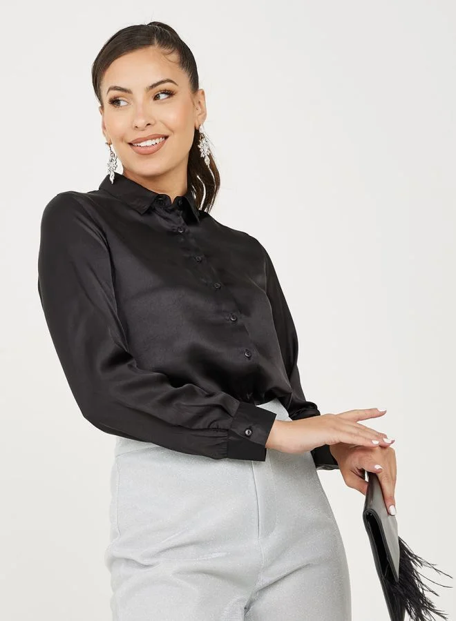 Styli Slim Collar Satin Regular Length Shirt