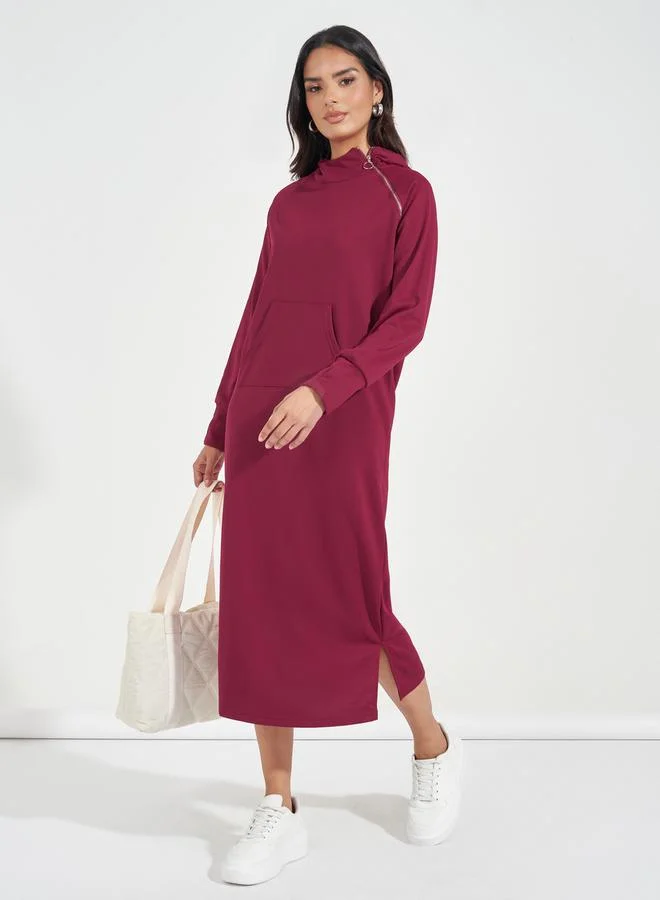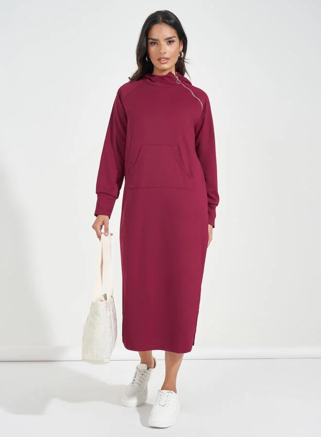 Styli Solid Flipper Zip Detail Sweatshirt Midi Dress