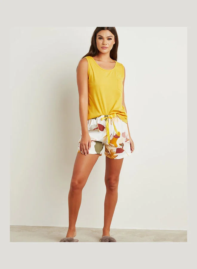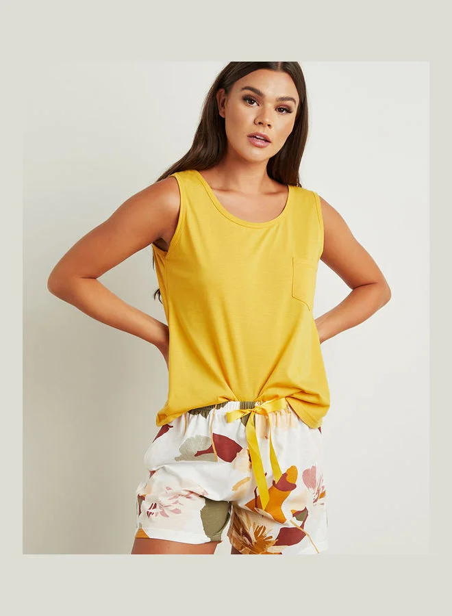 Styli Solid Pocket Detail Vest and Short Set