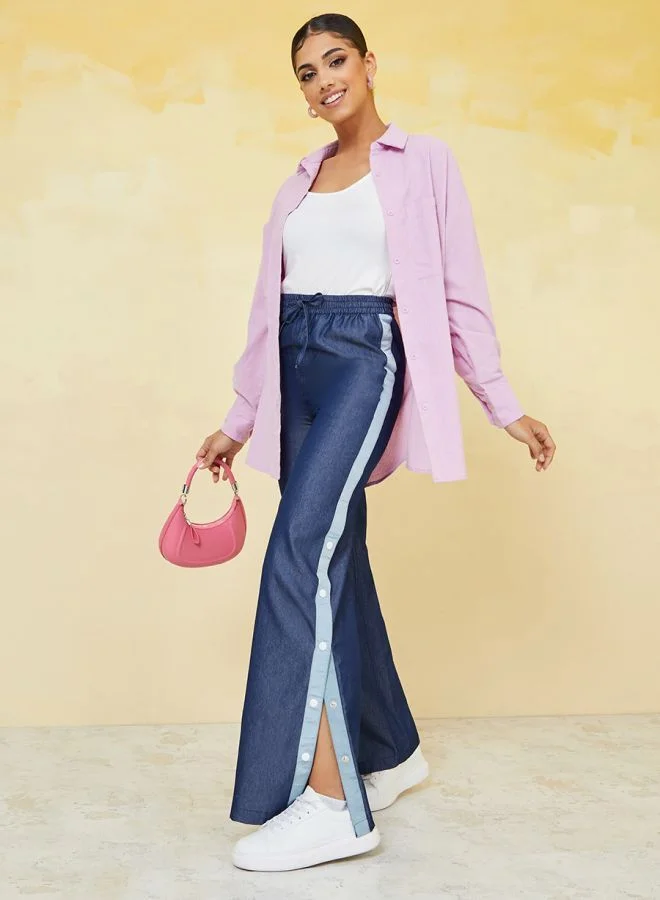 Styli Straight Pants with Side Popper Button