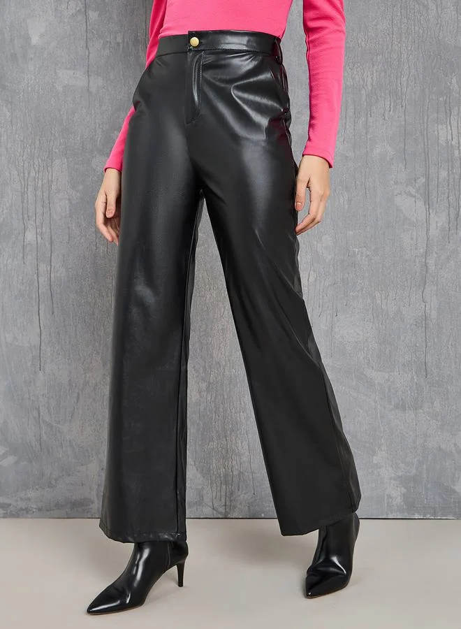 High Rise Leather Look Straight Leg Trouser