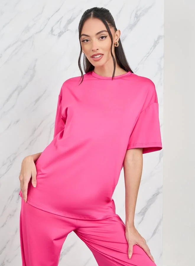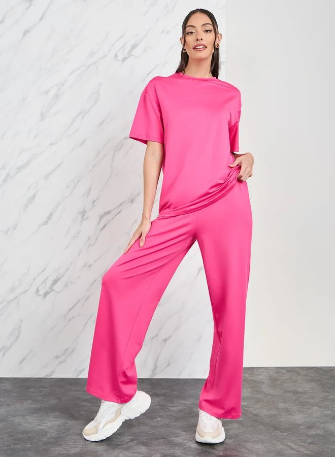 Solid Drop Shoulder T-Shirt & Wide Leg Pants Co-Ord