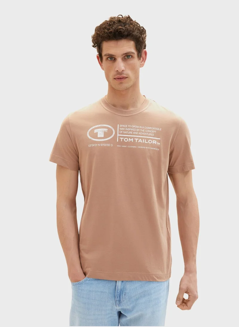TOM TAILOR Text Print Crew Neck T-Shirt