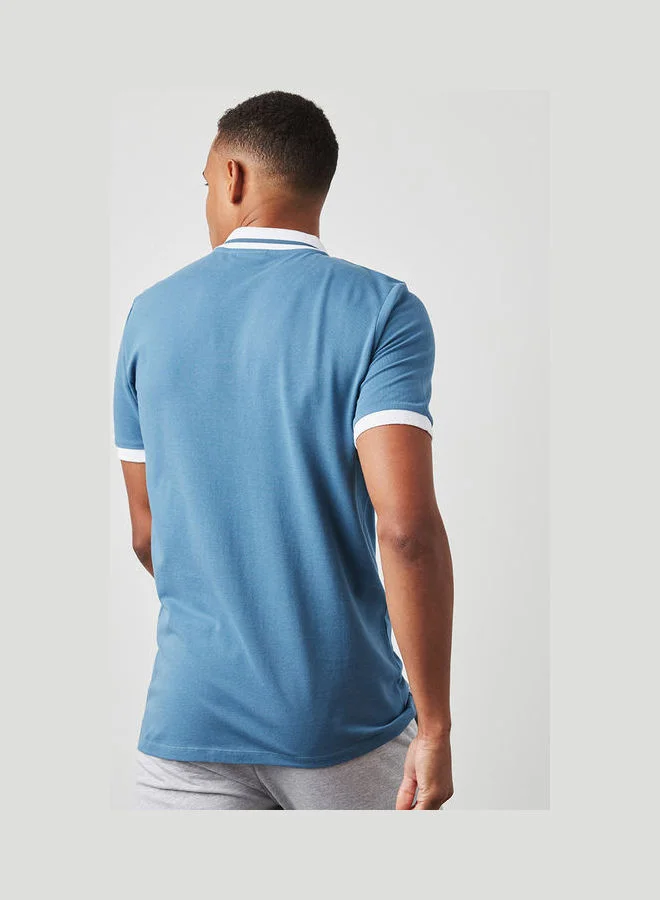 Diamond Cut Button Detail Polo Blue
