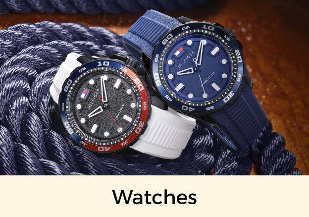Watches from this collection of luxury watches will keep you on time, and you can choose from watches featuring separate dials for days of the week and dates, or choose between modern bracelet styles and elegant leather strap designs. For men's footwear, you can choose from a range of Tommy Hilfiger sneakers, slip ons, boots, flip flops, sandals and lace ups here.