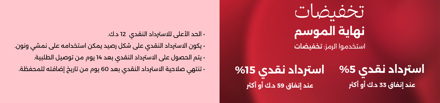خصم حتى 80% + استرداد نقدي حتى 15% للرجال