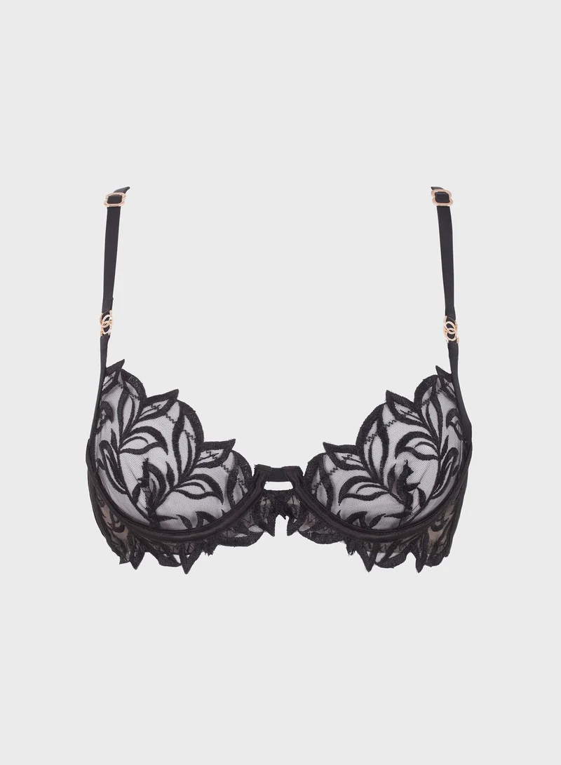Add this striking and seductive bra with appliqué detailing to your intimates wardrobe.