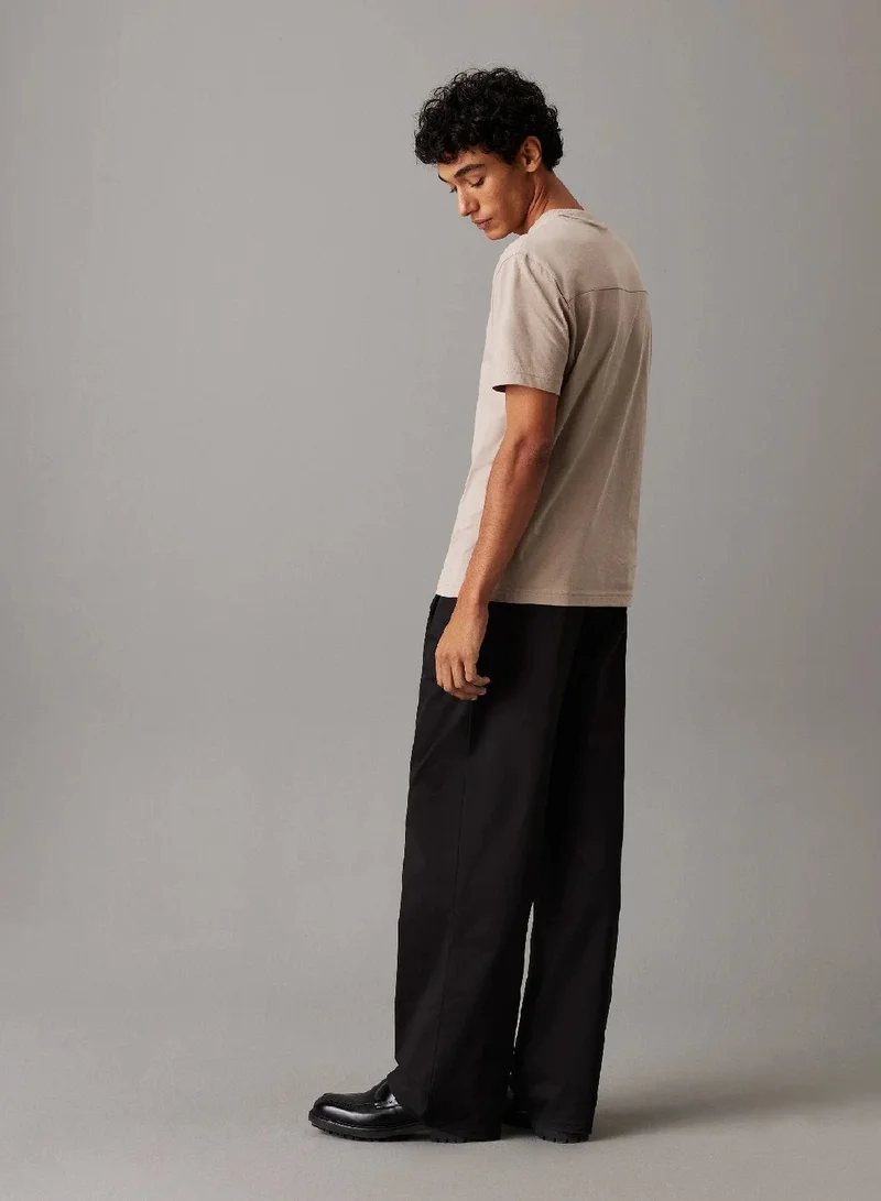 Modern. Sharp. Innovative. Calvin Klein Menswear offers a premium selection of men's styles from tailored suits to smart-casual looks. This T-shirt is crafted with 100% regenerative cotton, excluding trims. Regenerative cotton is grown using farming methods that seek to improve soil health, watersheds and biodiversity. • cotton jersey • textured bar with logo on the chest • regular fit • crew neckline • short sleeves • Calvin Klein raised logo embroidery on the chest • extended sizes available composition and care: 100% cotton machine wash tumble dry low country of origin: India