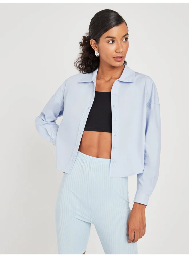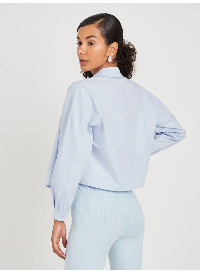 Closet By Styli Boxy Crop Poplin Shirt Blue