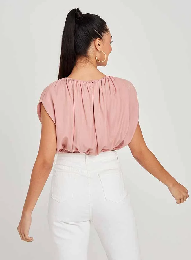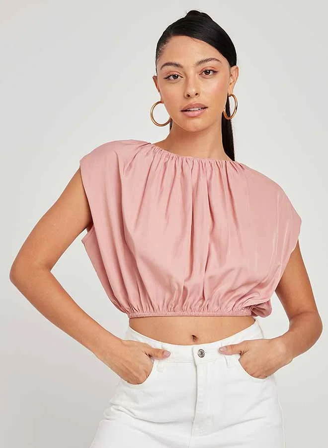 Closet By Styli Extended Shoulder Detail Short Sleeves Crop Top Pink