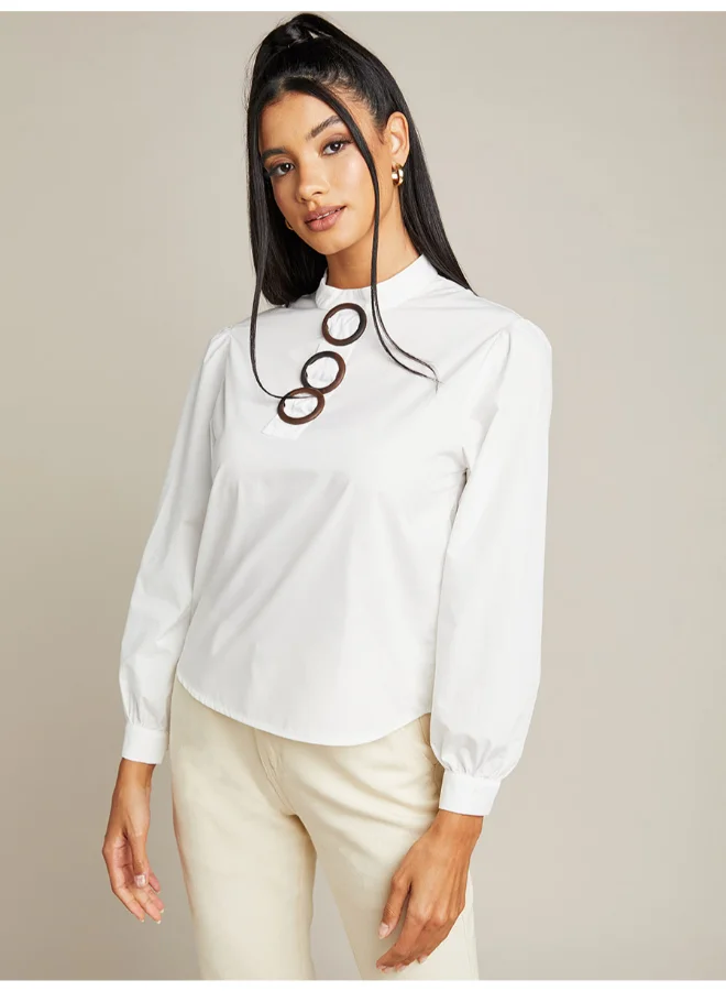 Closet By Styli High Neck Long Sleeves Tunic Top White