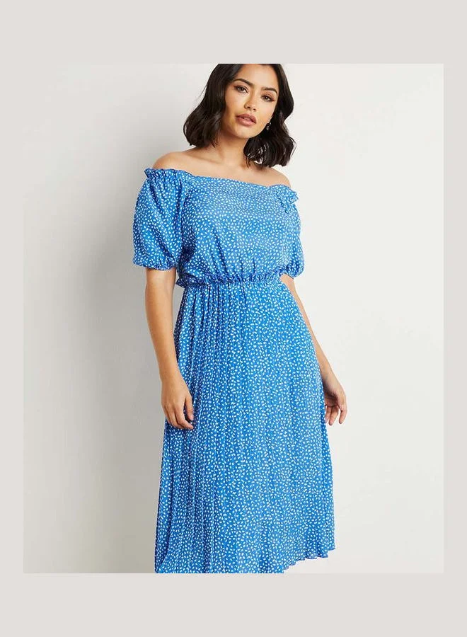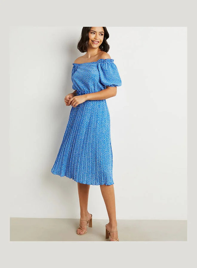 Closet By Styli Polka Dot Printed A-Line Midi Dress Blue/White