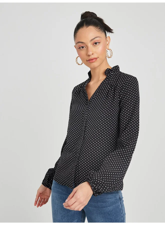 Closet By Styli Polka Dot Printed V-Neck Shirt Black/White