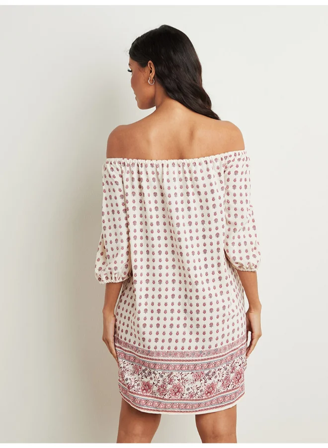 Closet By Styli Printed Off Shoulder Mini Dress Multicolour