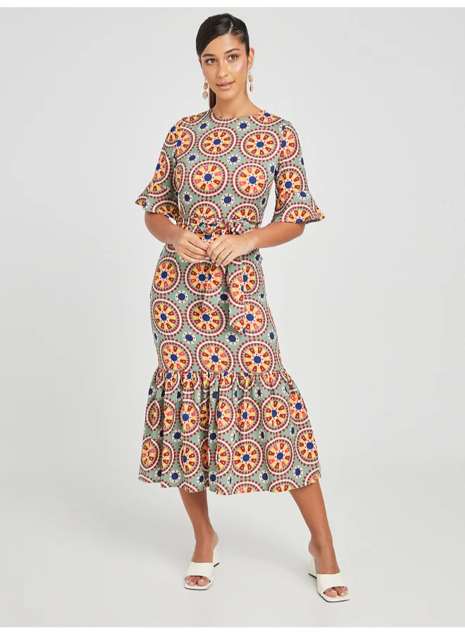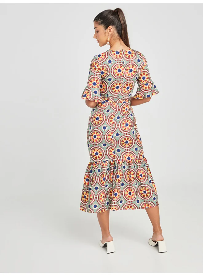 Closet By Styli Printed Tiered A-Line Midi Dress Multicolour