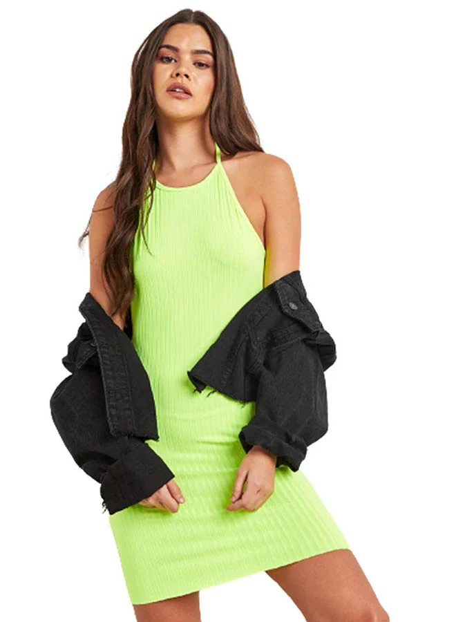 Closet By Styli Ribbed Halter Neck Mini Bodycon Dress Green