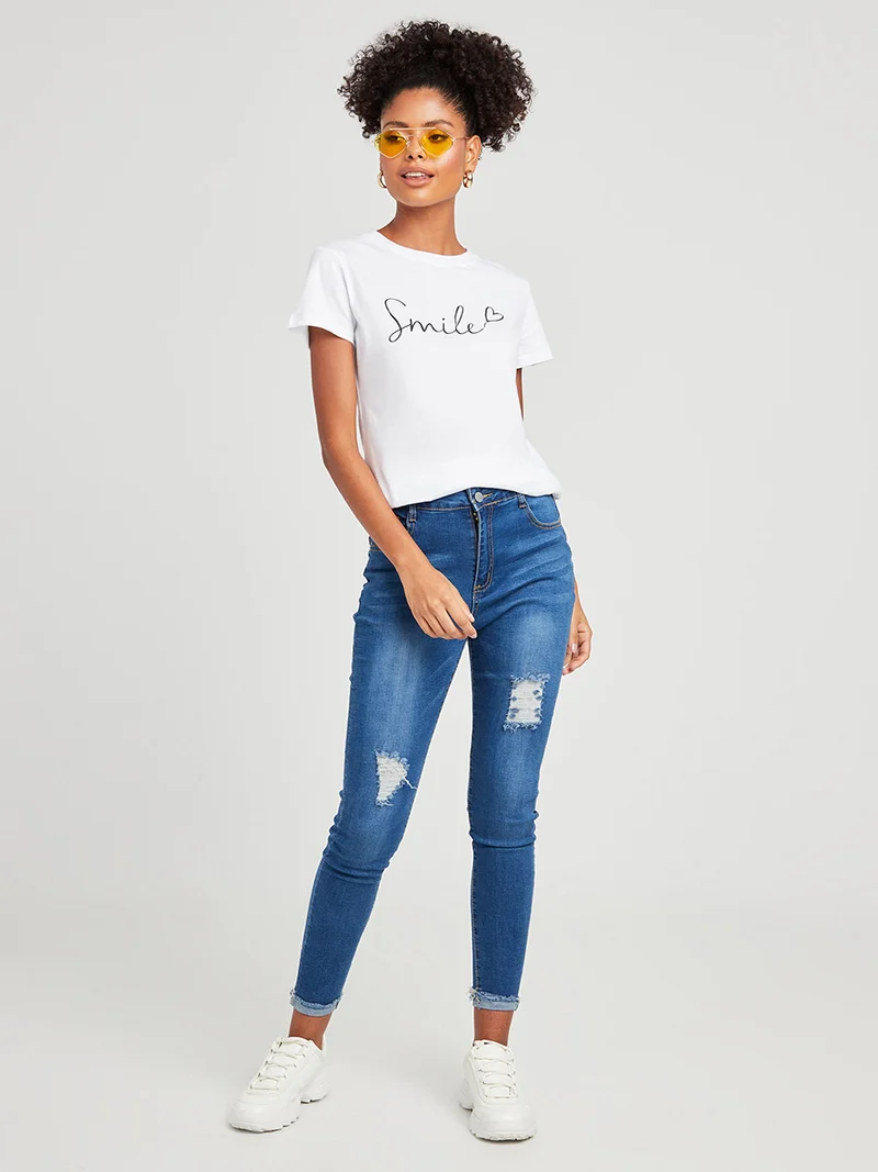 Closet By Styli Smile Slogan Print Regular Fit T-Shirt White