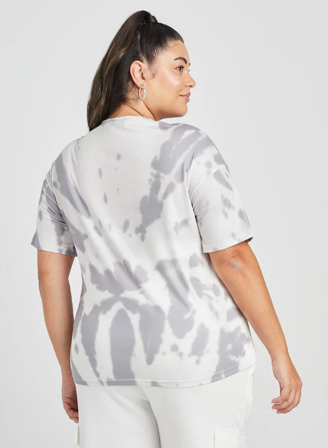 Closet By Styli Tie-Dye Printed Oversized T-Shirt Grey/White