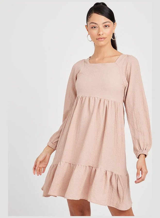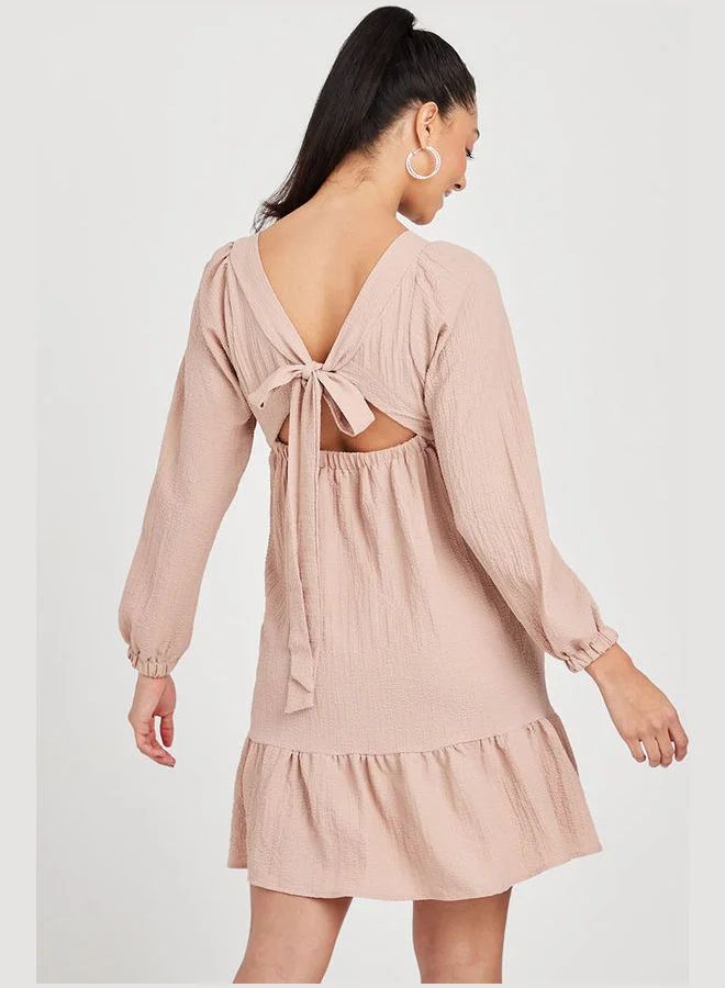 Closet By Styli Tiered Back Tie Up Mini Dress Beige