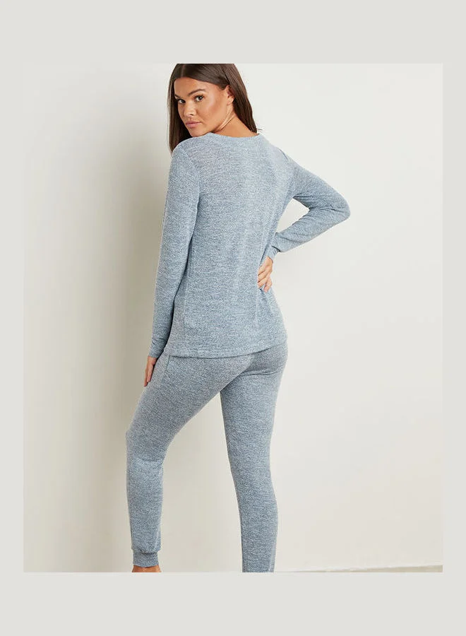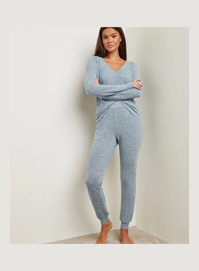 Closet By Styli V-Neck Lounge Top And Jogger Set Blue