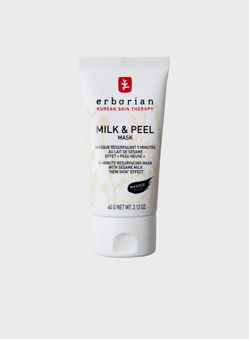 Milk & Peel Mask is formulated with Exfoliating Enzymes as well as Sesame Milk which has been known to visibly smooth skin's surface. Milk & Peel Mask exfoliates and gently rids skin of dead cells. Enriched with sesame oil which is known for its fatty acid content, the mask helps to nourish the skin leaving it feeling softer and smoother.