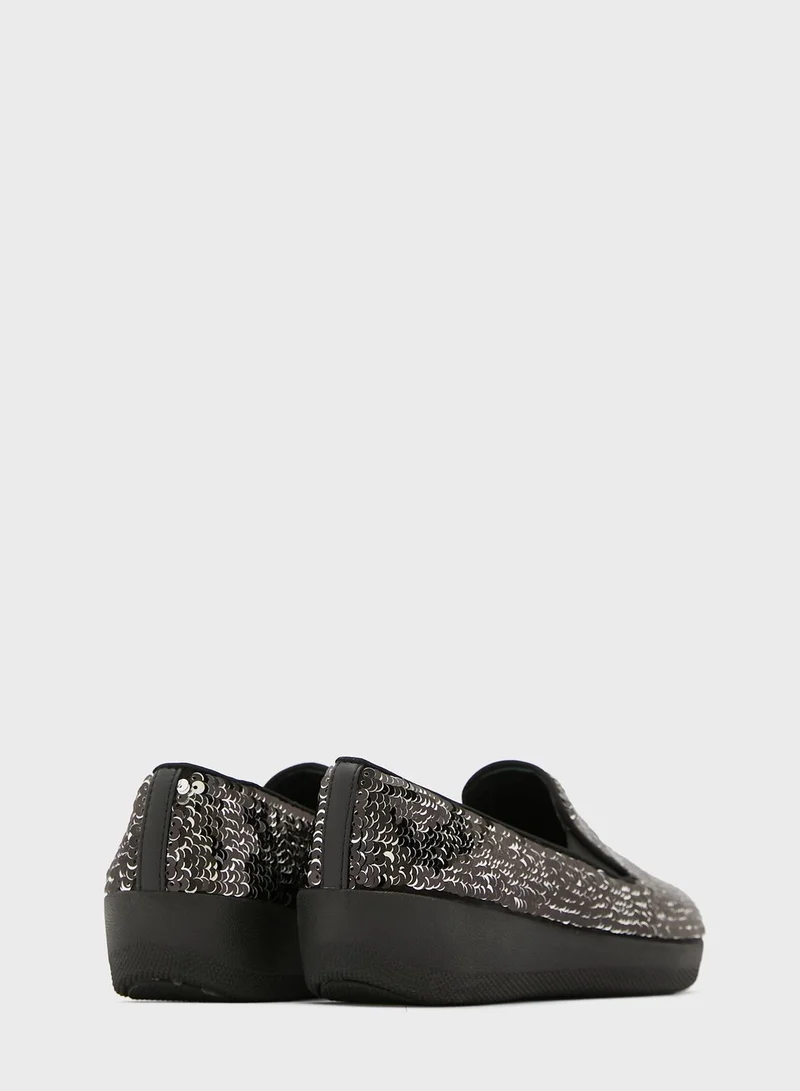 • Textured and comfortable textile upper with sequins embroidered all over