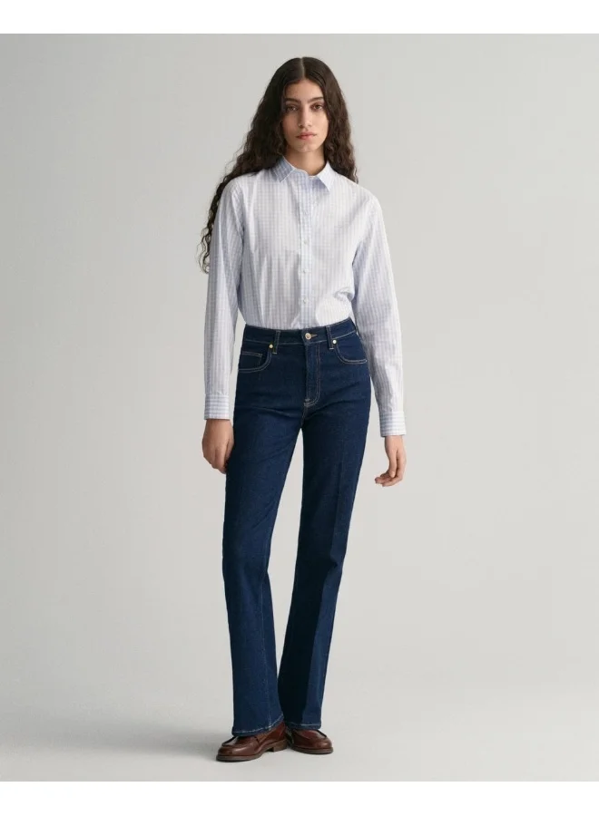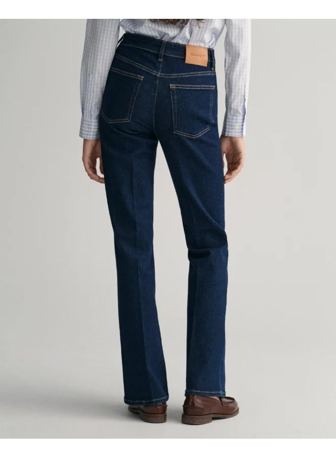 Crafted In An Authentic Twill With A Touch Of Comfort Stretch, These Jeans Are Designed For A Contemporary And Feminine Style. Cut For A Slim Fit, They Have A High-Rise Waist With A Flared Leg. Available In A Clean Dark Indigo Wash And Mid-Indigo Wash With Expressive Detailing, Both Jeans Feature Imitation Horn Shank Buttons And A Leather Gant Logo Patch At The Back Waistband.