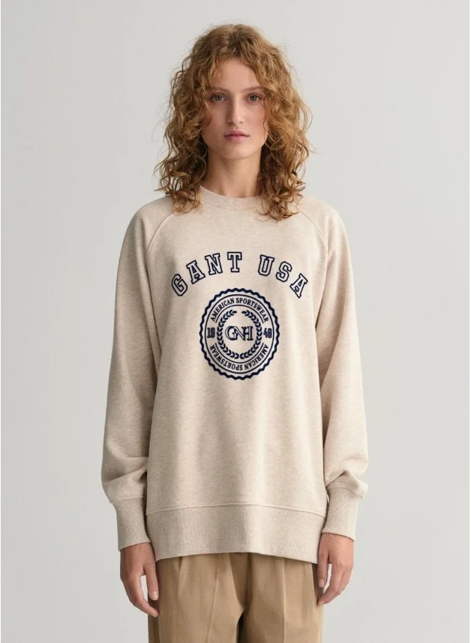 Perfectly suited for post-workout or as an everyday piece, this oversized sweatshirt is crafted from 100% organic cotton for a slightly worn-in feel. With a classic crew neck and GANT branded flock printing at the chest, it is sure to quickly become a most-loved item in your closet.