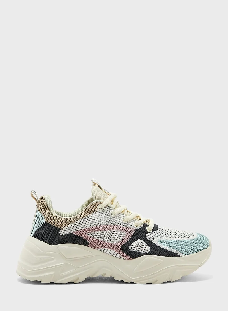 Color Blcok Knit Chunky Sneakers