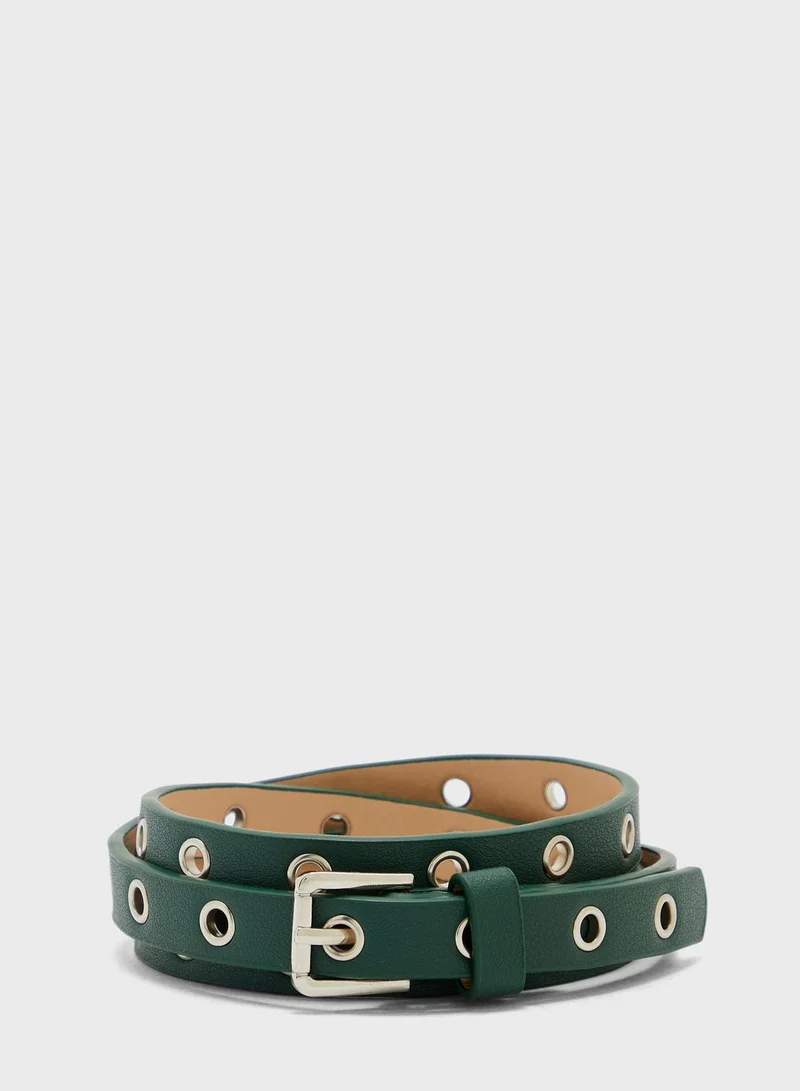 Eyelet Detail Slim Belt