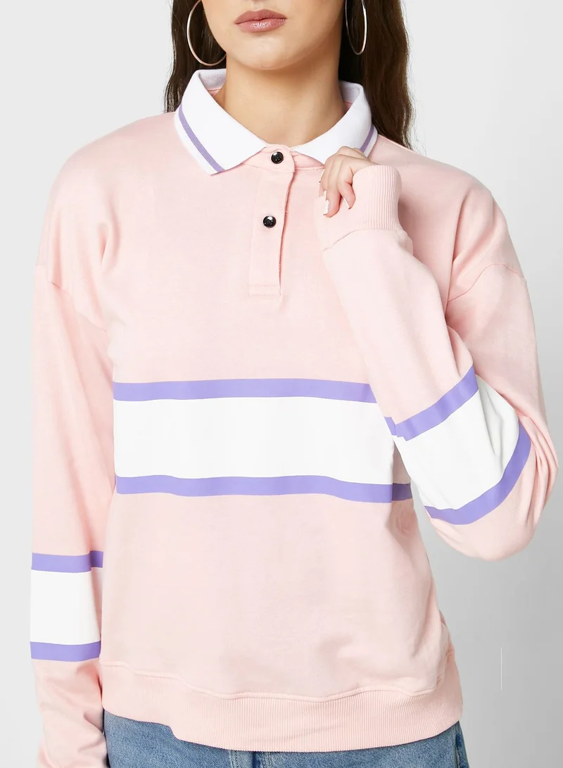 Ginger Polo Neck Varsity Style Colorblock Sweatshirt